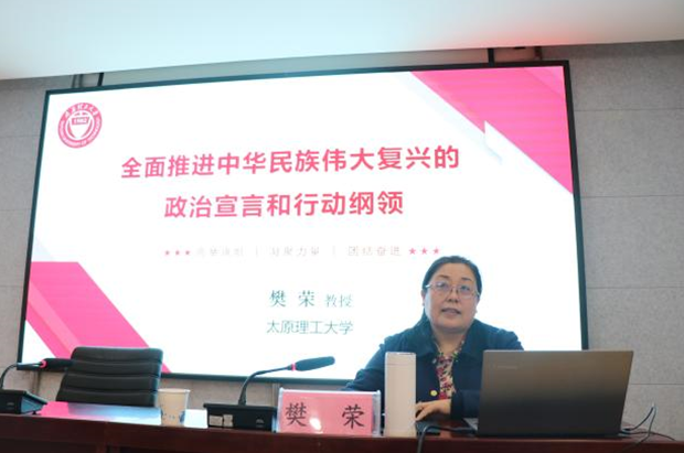 樊荣教授以学习贯彻党的二十大精神为主要内容,为参加培训的同学详细解读了党的二十大报告的总体结构、基本框架和主要内容,亮明了党在新征程上举什么旗、走什么路、贯彻什么思想、以什么样的精神状况奔向什么样的目标等重大问题,对参加培训的同学告诫正确的入党动机,要求同学们勿忘入党初心。