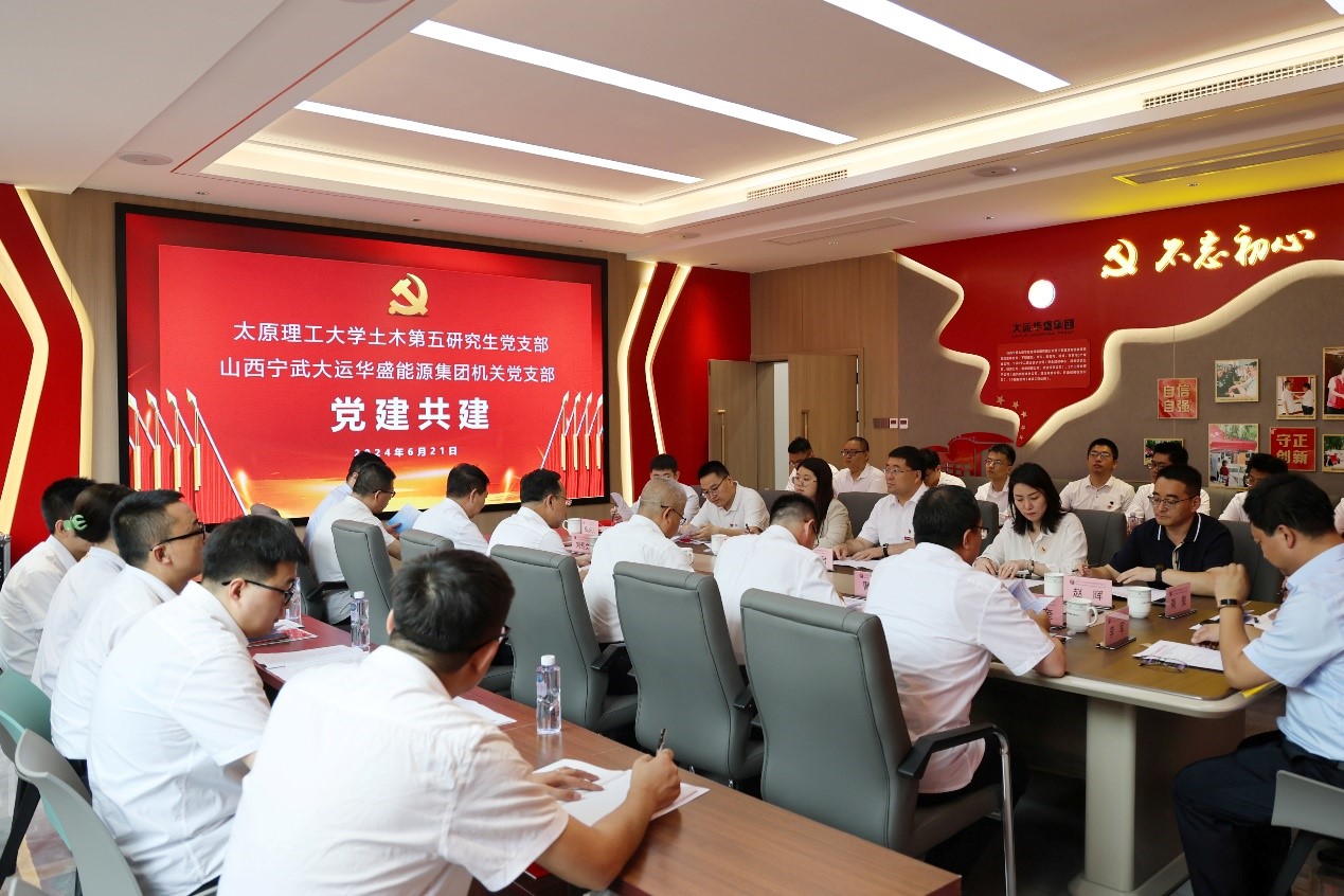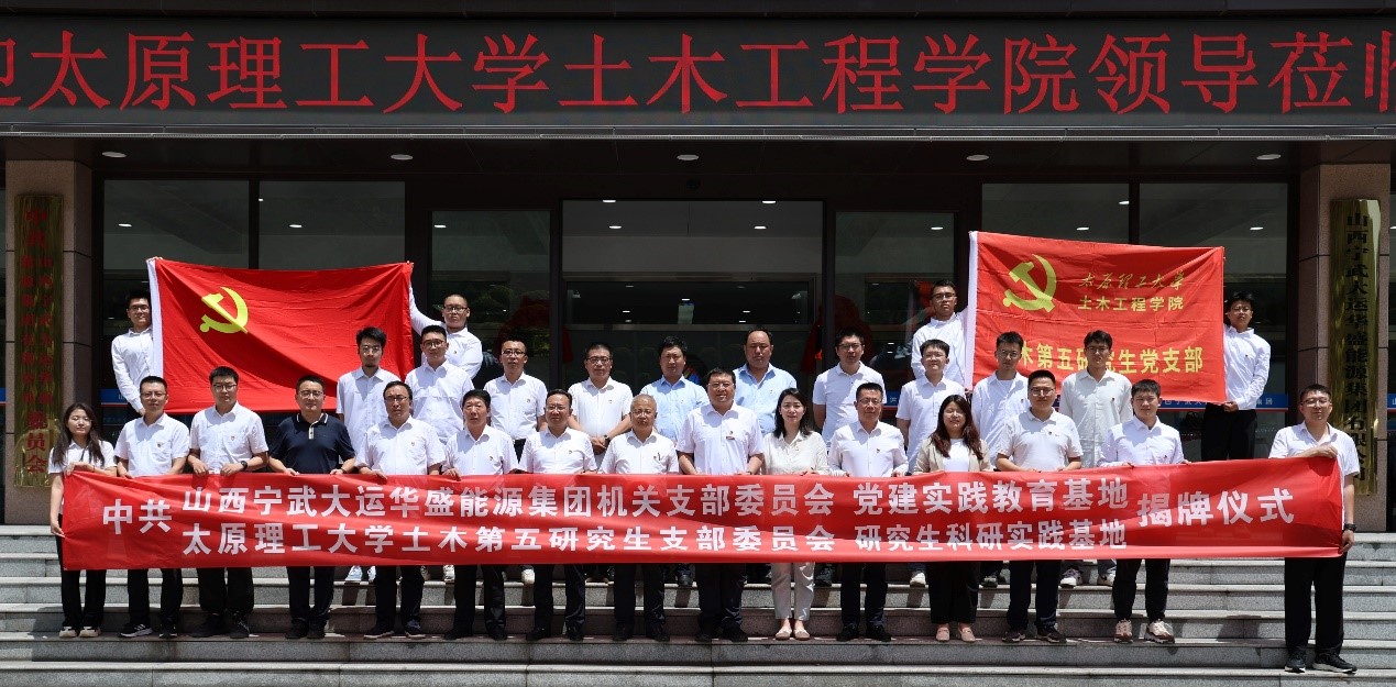 为深入贯彻党的二十大精神,全面落实产教融合战略部署,推进党建联建与科技创新、人才培养工作深度融合,积极探索党建与科研创新双融双促新思路,探索校企党建共建新模式,立科研先锋,促协同发展。2024年6月21日上午,公司党委书记武佐君、基础部主任王蕊、土木第五研究生党支部书记刘晓玲带领支部党员代表前往山西宁武大运华盛能源集团,与集团机关党支部开展党建共建签约暨党建实践教育基地、研究生科研实践基地揭牌仪式。山西宁武大运华盛能源集团有限公司董事长王和平、总经理王利平、集团纪检书记曹朝晖、总工程师郭文奎、机关党支部书记刘贵文,以及相关工作人员出席了仪式,并由王利平总经理主持签约仪式。