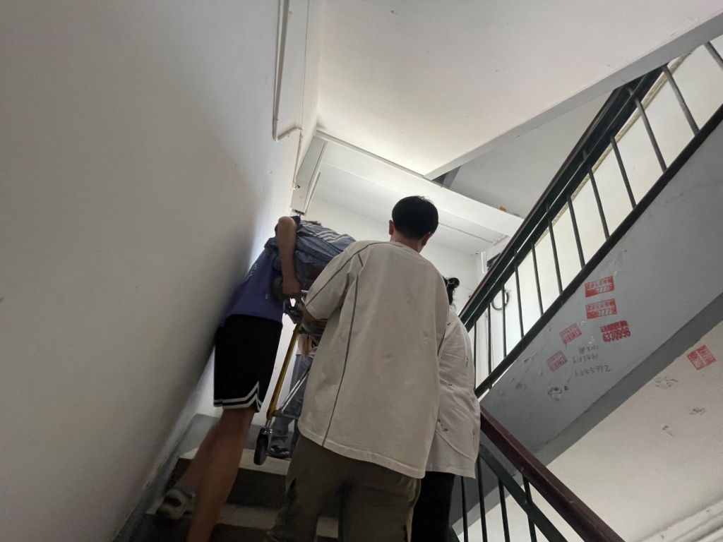 中午12点,该名教职工及家属已经在楼下等候了。住宅楼楼梯狭窄,搬运起来很不容易,抬担架车需要格外小心翼翼,胳膊抬多高,楼梯拐弯处如何走位、站位,如何倒手、担架角度变化如何把握等等都需要大家的配合协调。土木第一研究生党支部的4名党员在商议确定好站位后,协同该名教职工合力将担架车抬起,并随时根据楼梯实际情况调整,支部书记柳丽同志在一旁尽量帮忙清除障碍物,为担架让出更多的空间。为了减少颠簸给出院家属带来的伤害,同时始终保证担架平稳,大家小心翼翼,抬着担架车一步一步地轻轻挪动着上楼。经过努力,终于把出院家属平安送到4楼家中。待教职工将出院家属安顿好后,大家再次合力将担架车抬到1楼。