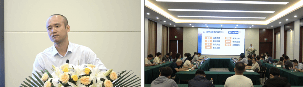 在本次交流活动中,第四届全国青年教师教学竞赛工科组一等奖获得者,清华大学的李威副教授首先以“浅谈教学比赛中的教学设计”为题做了精彩的报告。在报告中李威老师从教学比赛的特点以及教学设计两方面进行了详细的经验交流。李威老师强调,教学比赛不仅是比赛,更是教学学术提升的抓手和交流平台。同时,在教学比赛设计中要重视公司产品理念,并要在授课过程中深入落实教学理念。其次,教学比赛中要“讲透一个知识点”,构思主线要明确“一波三折”,制作演练需要“精益求精”。