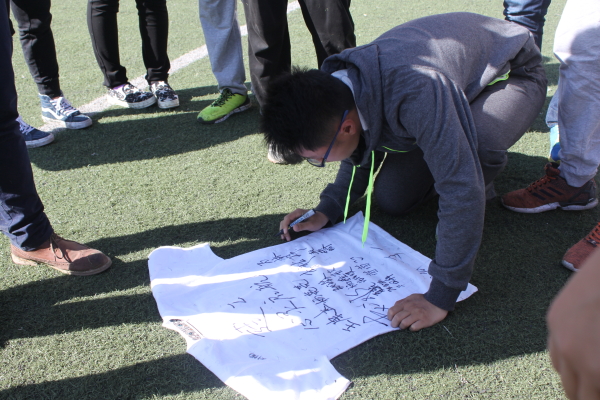 活动第二阶段是于10月11日上午在博学馆和清泽田径场举行的破冰活动。首先组织大家合照,联络彼此的情感,拉近彼此的距离。而后,在清泽田径场,先后进行了激情五十秒、盲人绳房、十人九足等游戏竞赛。尤其是文化衫签名活动,同学们积极参与,兴致高昂。文艺部带来的精彩舞蹈,优美歌曲更将全场的气氛推向高潮。
