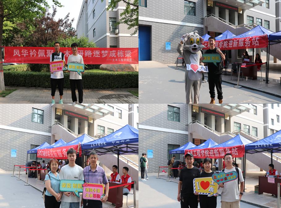 报到日清晨,志愿者们在迎新服务点等待新生的到来,协助搬运行李,指引报到路线,热情饱满、周到服务。报到过程中,审核报到信息、发放入学资料、耐心答疑释惑、办理助学手续,各环节分工明确,紧密衔接,为新生提供了高效便捷的报到服务。报到现场,醒目的迎新条幅、暖心的亲友接待、可爱的迎新玩偶……营造着热烈喜庆的报到氛围,让新生和亲友在入学伊始就感受到了土木大家庭的温暖。