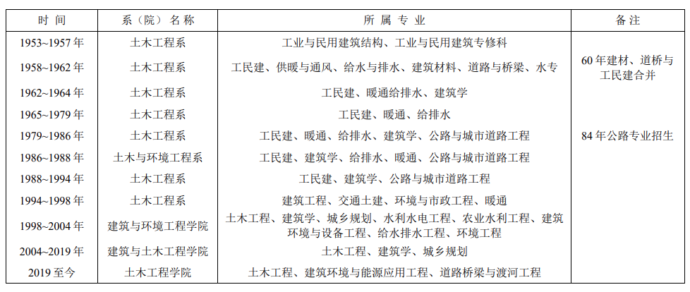 土木工程学系(院)沿革情况
