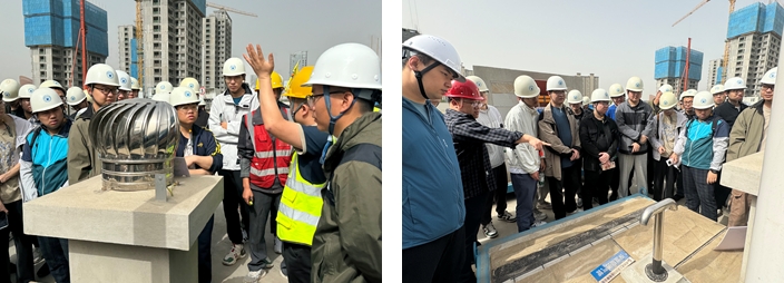 在陕建锦泓府施工现场,员工们近距离接触第四代建筑的核心创新理念,沉浸式了解地下室构造、砌体结构及现浇结构工艺等。在地基施工与结构样板区,项目负责人详细讲解施工流程与质量控制要点,激发了员工对工程建设的浓厚兴趣。