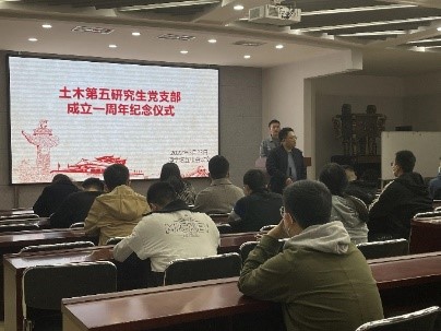 2022年3月24日,土木第五研究生党支部在博学馆五层会议室举办了土木第五研究生党支部周年党日活动。党政办主任王婕、第三党支部书记何斌、本科生党支部书记都静应邀出席,活动由王帅峰主持。
