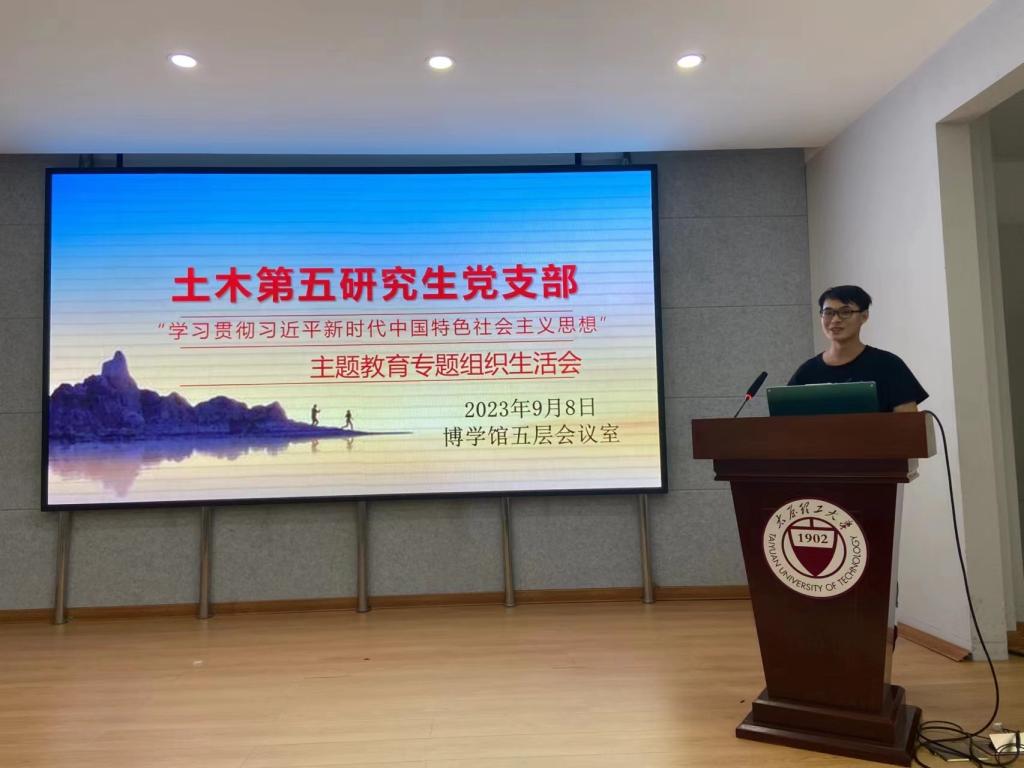 为加强党支部自身建设,根据《中共中央关于在全党深入开展学习贯彻习近平新时代中国特色社会主义思想主题教育的意见》(中发〔2023〕6号)以及《关于在学习贯彻习近平新时代中国特色社会主义思想主题教育中开好专题民主生活会的通知》(公司党组[2023]26号)要求,土木第五研究生党支部于2023年9月8日,在博学馆五层会议室召开了学习贯彻习近平新时代中国特色社会主义思想主题教育专题组织生活会。