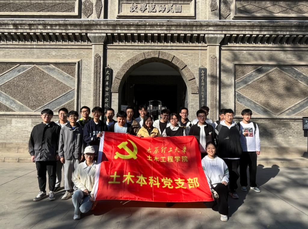 忆革命峥嵘岁月,谱青春奋斗华章。为进一步加强入党积极分子入党启蒙与党性教育,培育员工的爱国主义情怀,切实发扬红色传统,传承红色基因。10月27日下午,土木本科党支部书记都静带领2022级第一批入党积极分子到山西国民师范旧址革命活动纪念馆参观学习。