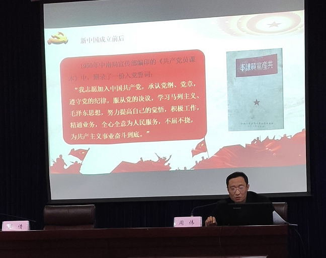 动员会后,公司党委书记周伟以《入党誓词的演变》为题,重点介绍了中国共产党在各个时期入党誓词的变化。通过入党誓词的变化可以看出,中国共产党在领导中国革命建设改革的伟大实践中,坚持把马克思主义的普遍原理与中国的实际相结合,不断推进马克思主义中国化,及时地把实践发展中的成功经验和党的理论创新成果反映到党章中来,反映在入党誓词中。