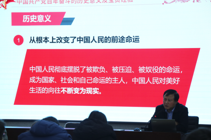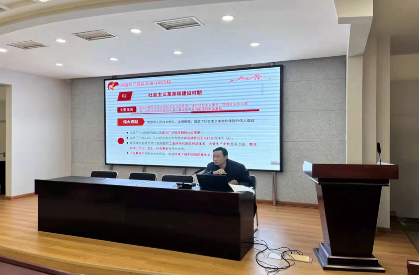 2021年12月20日-21日,公司党委书记周伟、经理董晓强在五层会议室为全院教职工、员工党员代表,专题宣讲十九届六中全会精神。