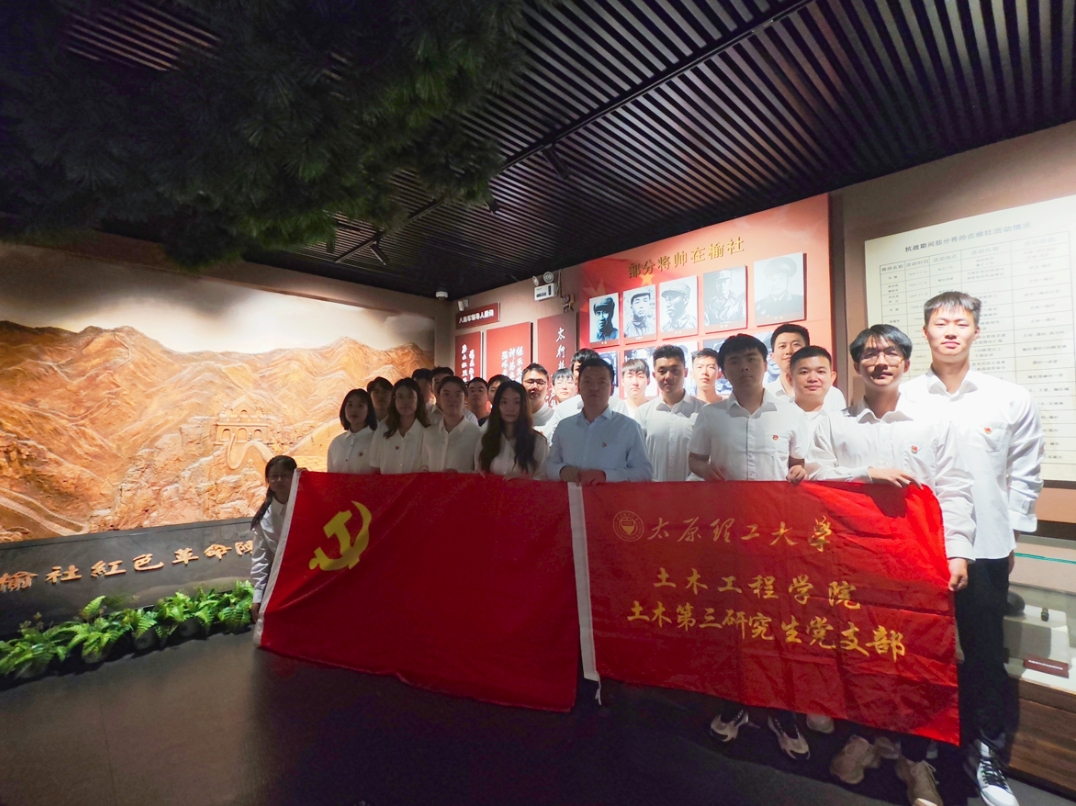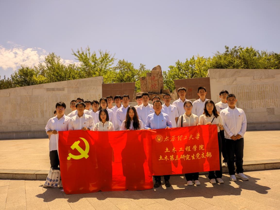 中国共产党成立103周年之际,为扎实推进党纪学习教育,巩固拓展学习贯彻习近平新时代中国特色社会主义思想主题教育成果,常态化长效化开展党史学习教育,进一步提高党员党性修养,丰富党史学习教育形式。2024年6月12日,土木第三研究生党支部全体党员赴榆社县开展党史学习教育主题党日活动,引导全体党员坚定理想信念、锤炼党性修养。