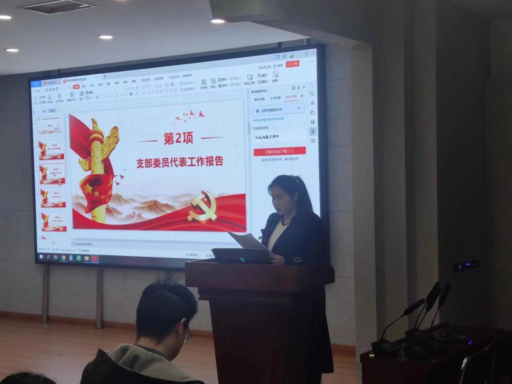 刘欣欣同志代表上届支部委员会向大会做了工作报告,全面总结了党支部一年间的工作情况、取得的成绩及存在的不足,并提出了下一步工作建议。