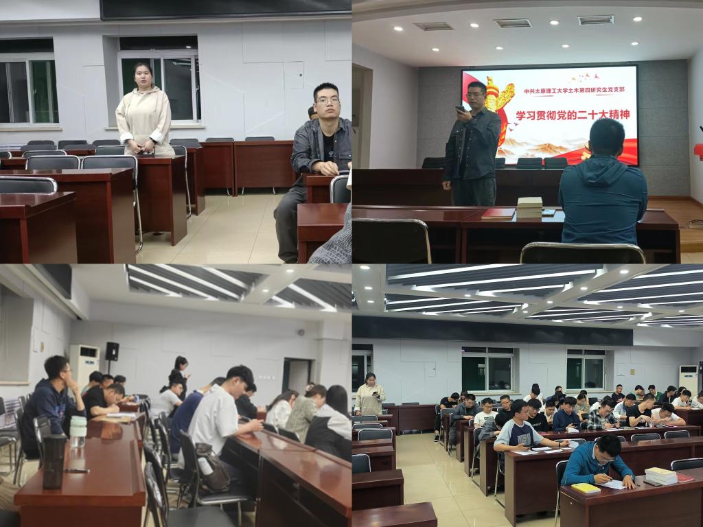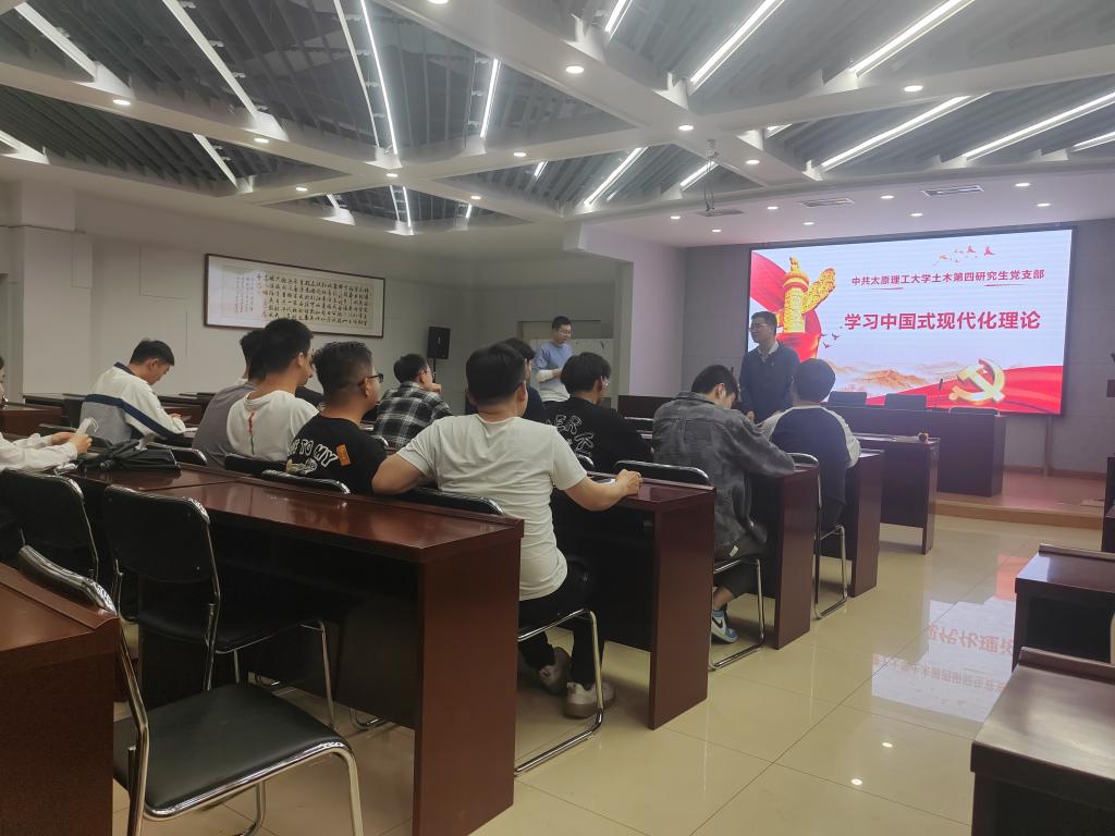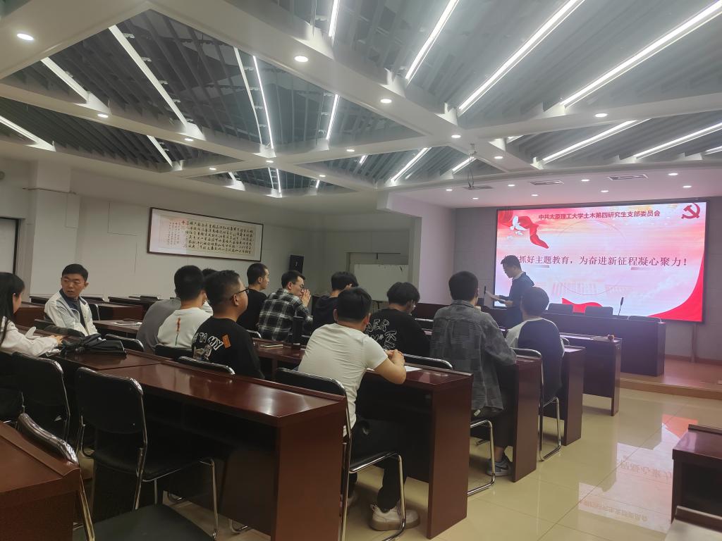 2023年5月29日,土木第四研究生党支部在博学馆A座五层会议室开展“学习党的二十大精神-坚定中国式现代化道路自信”主题党日学习活动。会议由宣传委员王浩宇同志主持。