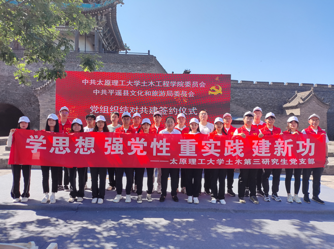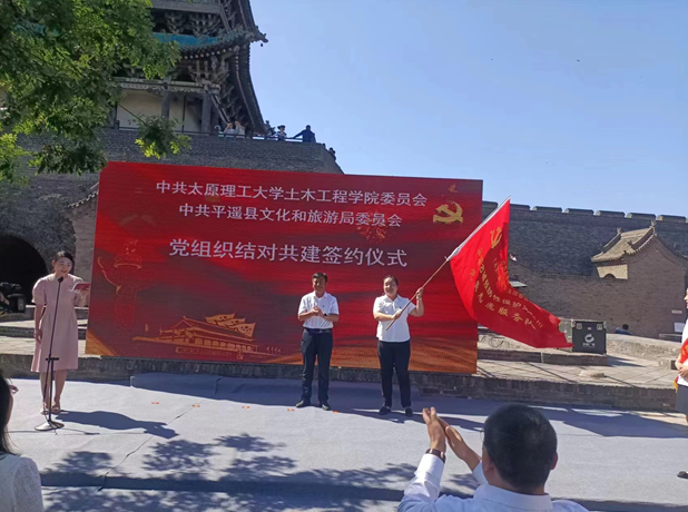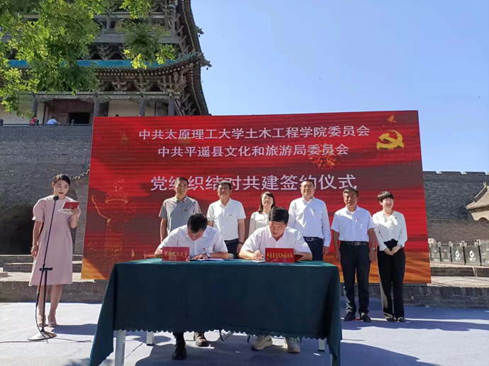 为扎实推进学习贯彻习近平新时代中国特色社会主义思想主题教育,进一步探索创新党建工作,全面开展基层党组织结对共建活动,着力构建基层党建工作新格局。正值2023年6月10日文化和自然遗产日之际,支部书记何斌和副书记马富丽带领全体党员同志赴平遥开展主题教育实践活动。平遥县委常委、组织部长程建明、县政府副县长张旭峰、县文旅局局长郭效云、公司党委组织部副部长谢鹏华、公司党委书记武佐君、科研院副经理李飞、公司工会主席刘元珍、韩鹏举教授和白晓红劳模创新工作室等领导和老师们应邀出席了签约仪式。