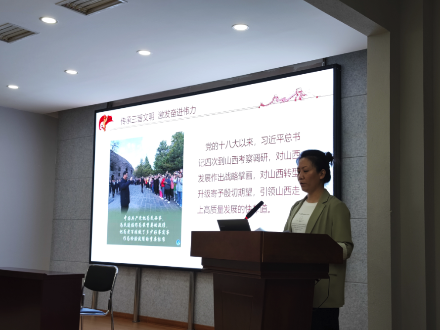 党课围绕党的十八大以来习近平总书记四次对山西省考察作出的重要指示,尤其是党的领袖对老区宏伟蓝图的战略擎画和对山西转型升级的殷切期望。芦倩针对当代青年老员工党员的特点,围绕山西历史文化特征与树立文化自信进行了讲授。