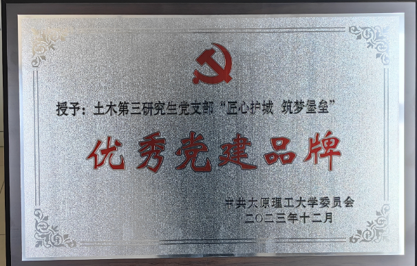 根据公司党组函〔2023〕45号《关于开展第五批“五星级党组织”和2023年度优秀党建品牌评定工作的通知》精神,公司土木第三研究生党支部总结工作、凝练特色,完成了“匠心护城·筑梦堡垒”党建品牌的申报,在公司组织召开的2023年党建品牌评审大会上,经过激烈比拼,最终被评为优秀党建品牌。