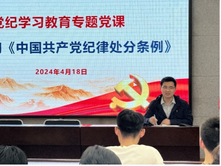 最后,支部书记邱斌进行了总结发言。他强调,支部党员同学要以身作则,自觉加强党纪党规学习,切实增强纪律意识,提高党性修养,用党规党纪校正思想和行动,严格执行和维护党的纪律。他要求,全体党员同志要广泛宣传党纪学习教育的重要意义、目标要求和主要内容,营造浓厚的学习氛围,让党纪学习教育深入人心,取得实效。