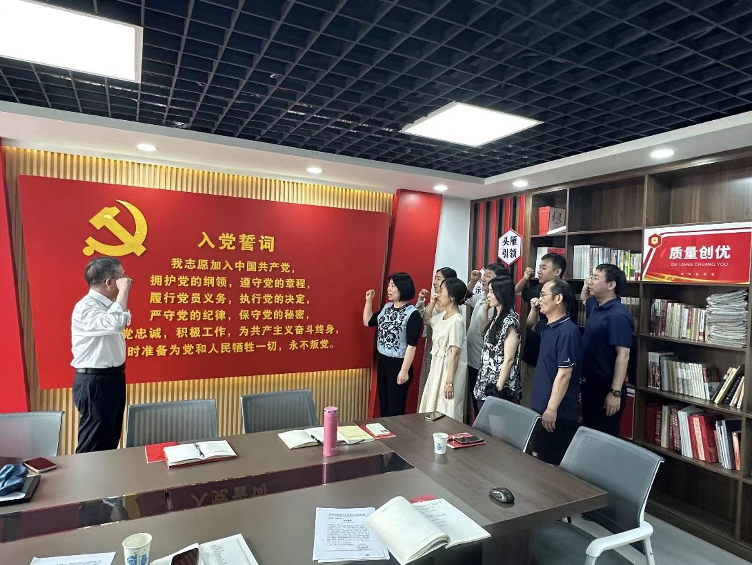 随后,葛经理带领支部全体党员进行了重温入党誓词。在庄严的氛围中,全体党员教师高举右拳,郑重宣誓。铮铮誓言铿锵有力,彰显了党员爱党爱国的赤诚之心。这一刻,大家心潮澎湃,感受到了作为一名共产党员的责任和担当,不仅是一次思想的洗礼,更是一次精神的升华。