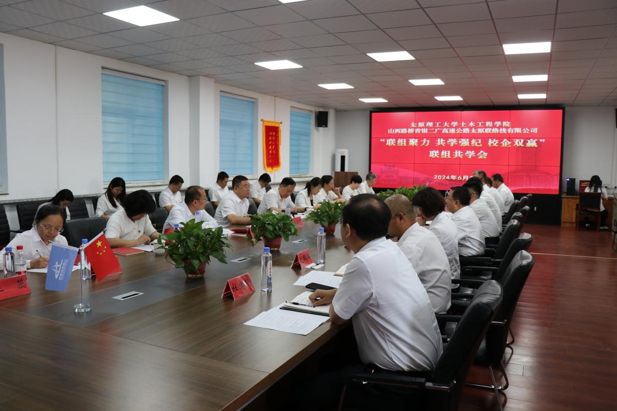 6月25日上午,公司党委与山西路桥青银二广高速公路太原联络线有限公司党支部在太原联络线公司四楼会议室召开理论学习中心组“联组聚力 共学强纪 校企双赢”主题联组共学会。研究生院经理、公司经理董晓强,组织部副部长谢鹏华,公司党委副书记芦倩及公司各部门负责人,系部中心主任,党支部书记参加会议;太原联络线有限公司党支部书记、董事长田正旺,支部副书记、副董事长、总经理韩永宏,支部委员、董事、副总经理宋竹兵,支部委员、工会主席秦志红及bg大游集团官方网站领导班子成员参加会议。公司党委书记武佐君主持会议并讲话。
